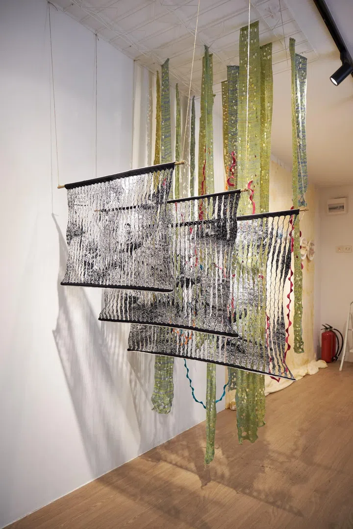 There are also works by artists Adeline Thng, Agatha Lee, Alysha Rahmat Shah, Autumn Brown, Jennifer Anne Champion, Nandita Mukand and Nature Shankar. It's also an interactive exhibition as audiences are invited to try their hand at weaving on a Japanese floor loom, as well as contribute to a collective tapestry.