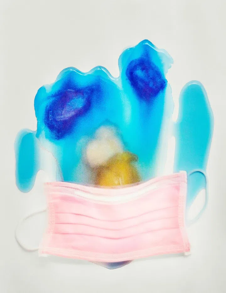 Pictured: Welcoming Portrait Of A New Time by photographer Lavender Chang abstractly depicts a subject wearing a mask.