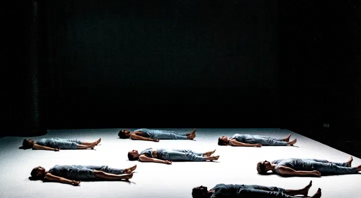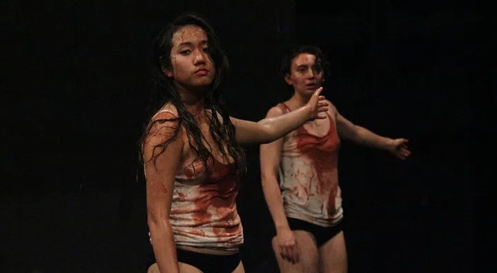 YY (in foreground) in The Bacchae #2, an ensemble number based on the ancient Greek work by Euripides.
