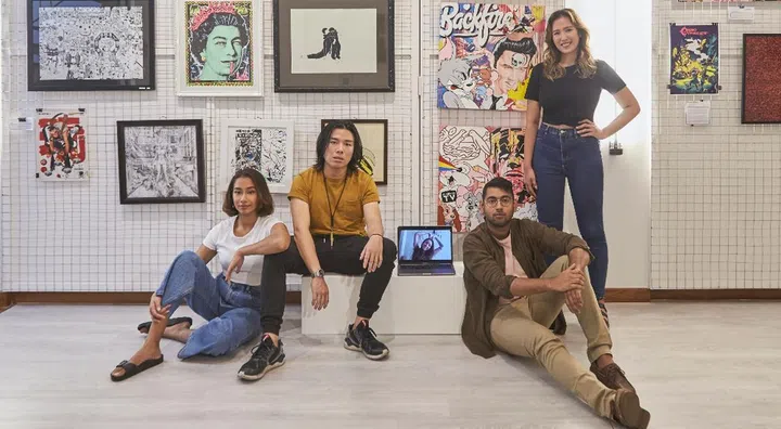 Besides staging fun, light-hearted works, the zany independent youth theatre collective Patch And Punnet aims to rally local independent groups together to create a lively and collaborative industry. Here, its five millennial members strike a pose at Kult Gallery, the friend and neighbour to its cosy office space on Race Course Road: (from left) Nadya Zaheer, Astley Xie, Pearl Zuzarte (beaming in via Zoom), Krish Natarajan and Moira Loh.