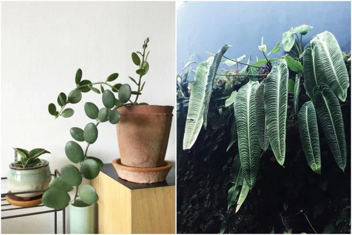 According to him, fans of the Xerosicyos danguyi (left) love it for its round, pancake-shaped leaves and symmetrical growth pattern. Foliage plants (right) will also be a big trend this year.