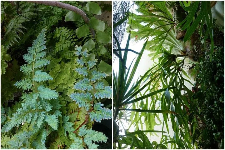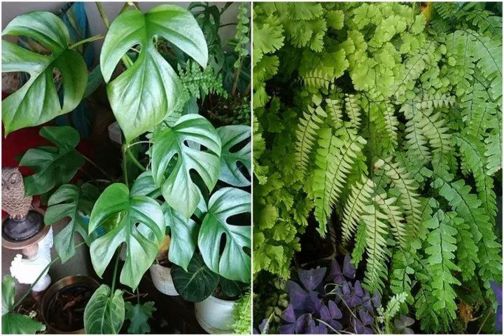 The Rhaphidophora tetrasperma (left) is on his radar for the next "hot" plant type while the Maidenhair fern reminds him of growing up in Mauritius.