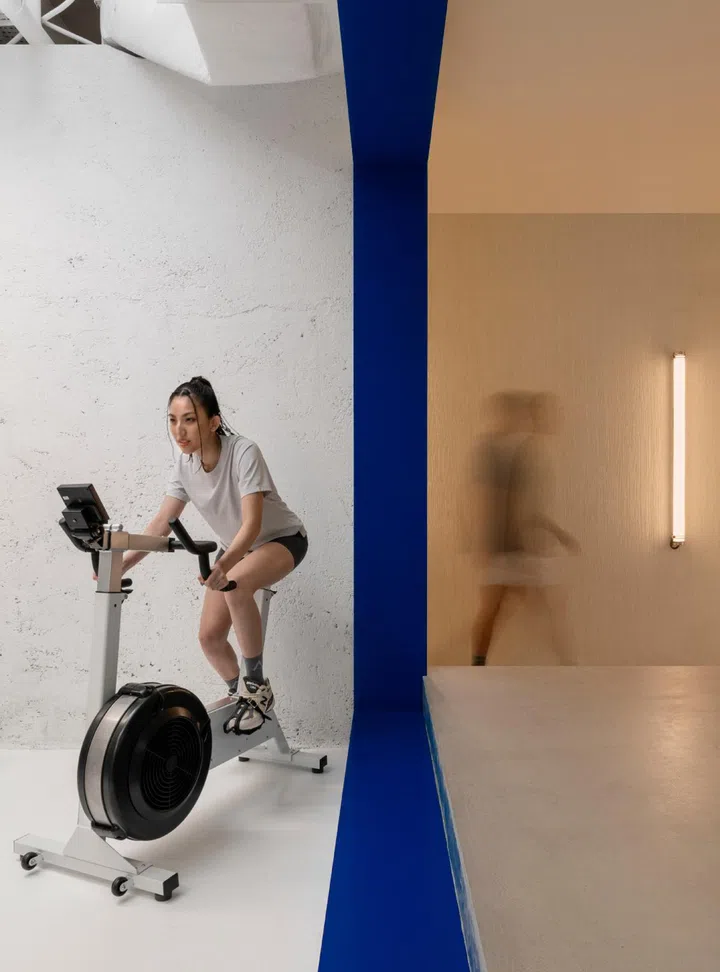 The gymnasium of Sphere – with its white walls, flooring and equipment – evoke the design sensibilities of designers such as Rick Owens and Martin Margiela.
