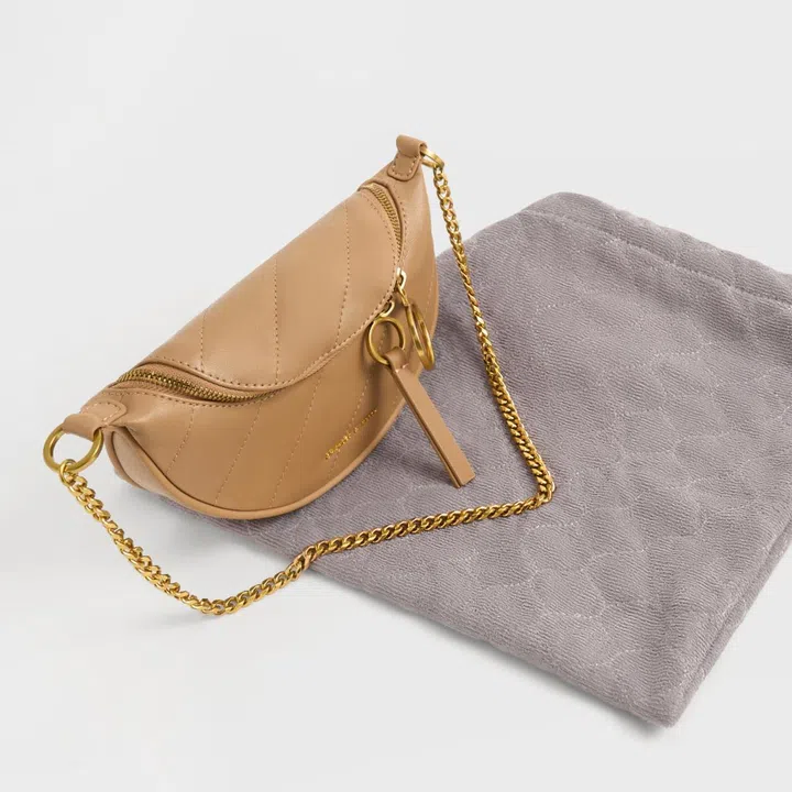 The sustainability touches continue in the inside as well as the packaging: cushion covers and bedsheets have been turned into inner lining while blankets have been repurposed into dustbags. To commemorate the collaboration, logos of Charles & Keith and SIA are hot stamped on the inside of the bag and wallet.