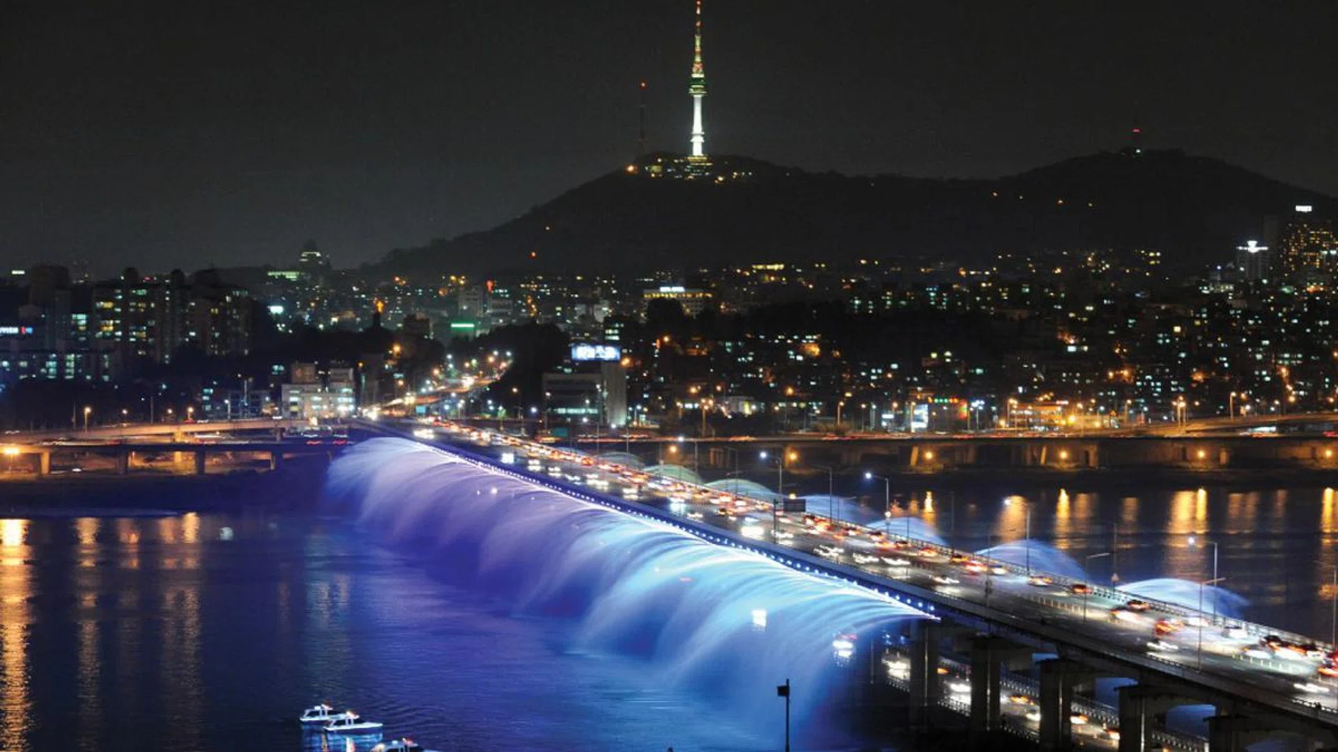 The Jamsugyo Bridge over Seoul's Hangang River is the main stage for Louis Vuitton's Pre-Fall 2023 runway show. Credit: Louis Vuitton