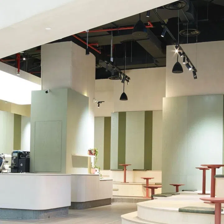 The lowdown: Pronounced "cake by Olivia", this cafe specialises in cheesecakes. Its retro aesthetic was developed by Barcelonan interior design company Cris Cela Studio, with an emphasis on geometric shapes like circles, triangles and squares. The colour palette also represents the brand’s cheesecake, including a touch of navy blue as an ode to blue cheese as an ingredient. Cheesecakes come in a variety of flavours, such as the New York cheesecake and Basque cheesecake with rum and vanilla pastry cream filling.