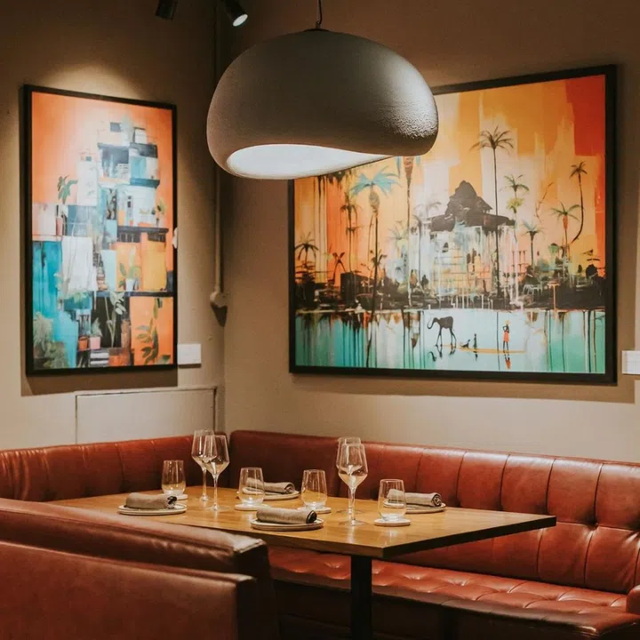 The aesthetic: Guests stepping into Lo Quay enter a stylish space that is part mid-century contemporary dining room and part art gallery, warmed through with earth tones and natural wood. On the walls hang artwork that will change from time to time. Lo Quay’s opening sees the debut of the art exhibit “Quynh and the Machine” — an exploration of Chef Brown's journey through life and the world as seen through the lens of AI-generated pieces.