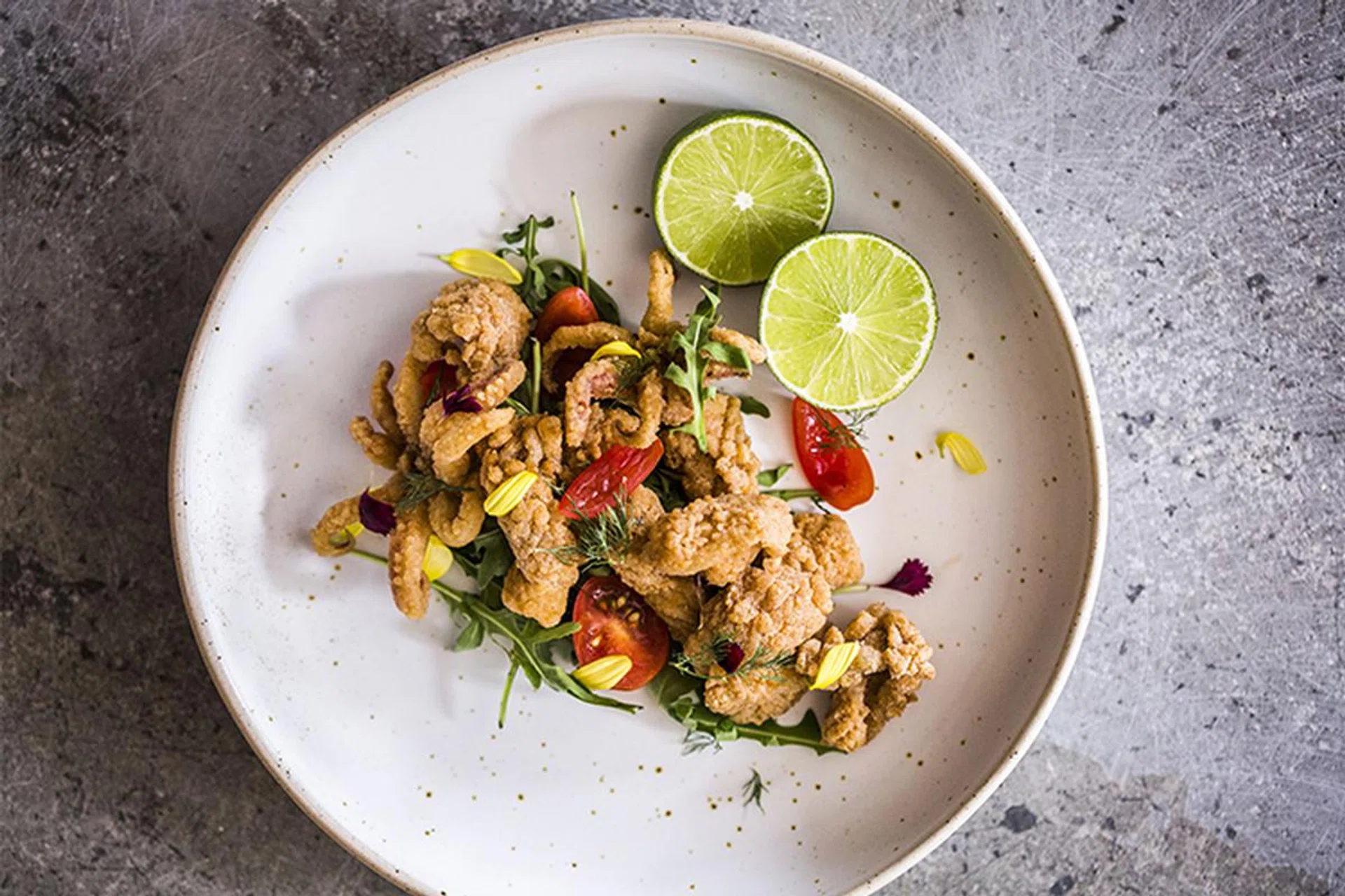 The open kitchen helmed by Chef Justin Hammond (of Neon Pigeon) includes a mix of snacks, dips, and shared dishes. Our top picks: the Roasted Sweet Potato & Chili Hummus ($7) that marries both sweet and spicy flavours and for something more citrusy, try out the creamy Greek Style Burratina with tangerine, coriander and honey ($16).