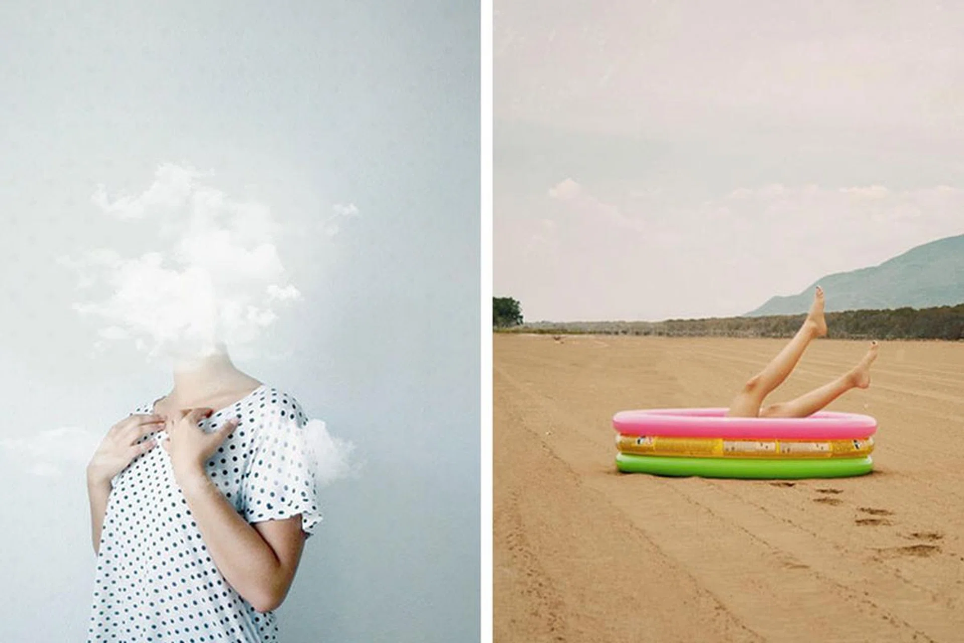 Portugal-based artist Teresa Freitas is a pro at creating dreamy, minimalist snaps. Everything on her feed carries a light, ethereal quality, whether it's putting a wispy cloud or a bunch of flowers in place of a woman's head, or turning everyday objects like a door frame into something more.