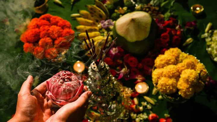 A photographic print (Transcendental Water Bodies – Offering, 2019, by artist Vimal Kumar), as part of Tekad Kolektif's most recent exhibition, With You Here Between: Defamiliarisations, staged last November at the art space Objectifs.