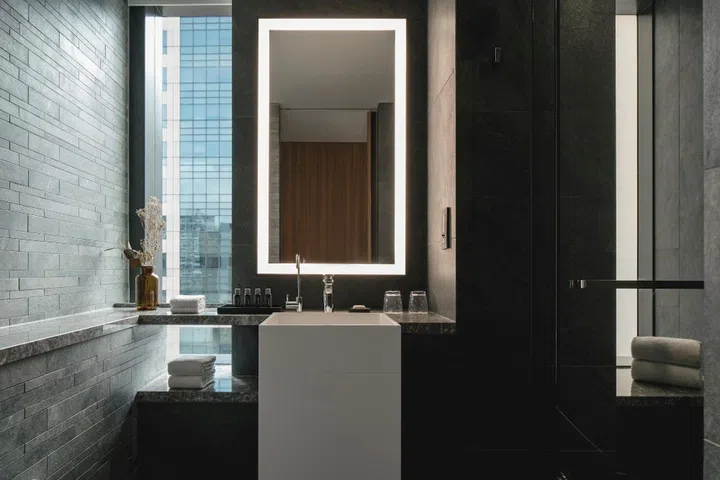 While there is no spa in the hotel, you can head to the rooftop Sky Pool (pictured) to chill on the lounge chairs or soak in the jacuzzi. Or fit in a workout at the adjacent 24-hour Sky Gym, with panoramic views of the city. The gym comes with a traditional wing chun wooden dummy.