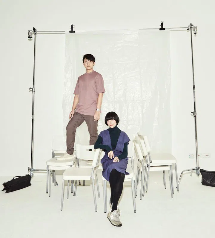 Tan (left) wears cotton T-shirt and pants, Cos, and his own shoes. Foo wears her own clothes and accessories. Photography Tan Wei Te Styling Adeline Eng.