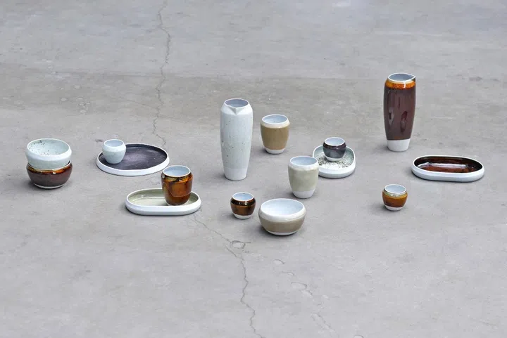 This ceramic collection is the work of Lithuanian material designer Agne Kucerenkaite. Currently based in the Netherlands, Kucerenkaite works with raw materials and waste to transform them into valuable products, methods and systems.