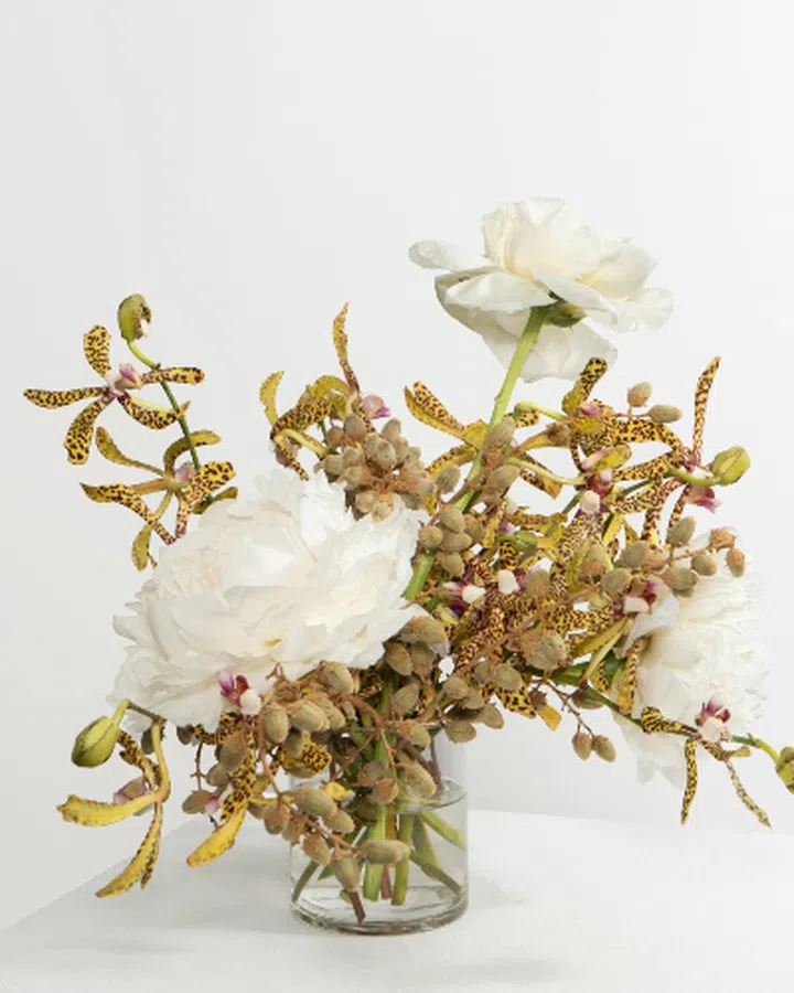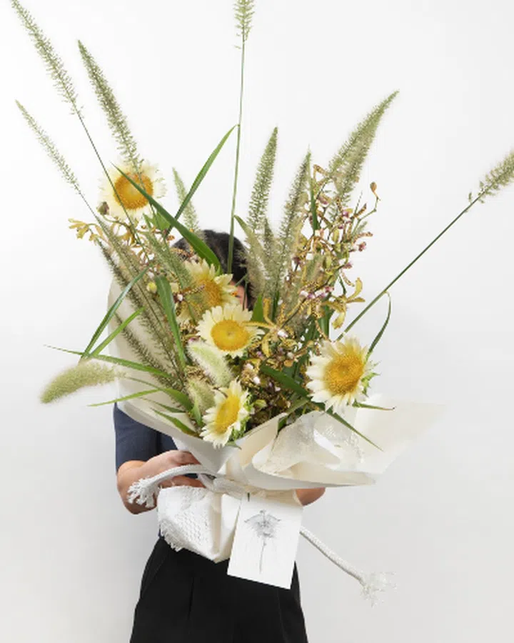 Check out the Meadow ($250) if you prefer a miniature version of the large-scale arrangements This Humid House adorns at venues such as The Straits Clan and Cicheti. The floral design is a dramatic centrepiece featuring curly foxtail lilies mixed with mistletoe fig that is grown in the garden and held together in a minimalist brass vessel.