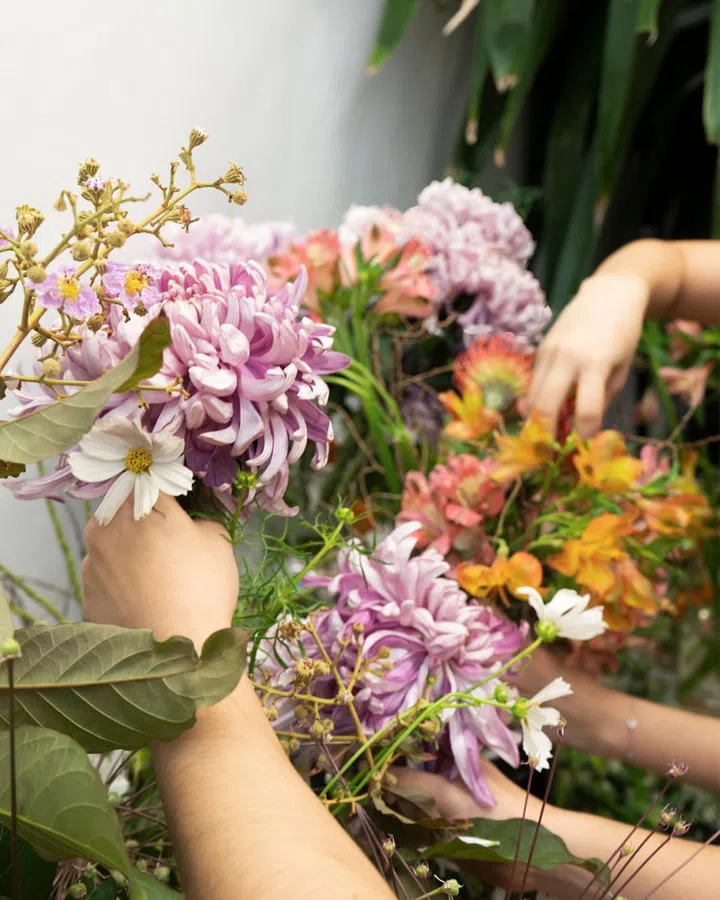 Among the unique offerings on the brand's e-shop is the Harihari arrangement which uses fresh pickings from the garden each morning.