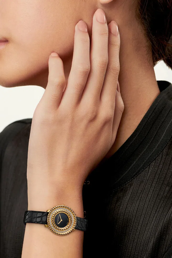 A double twist of polished gold rope encircles the dial, separated by a halo of round brilliant diamonds. The brand also demonstrates its attention to detail by also featuring the rope motif on the minute hand. But the real magic lies beneath: instead of ticking on a standard lithium battery, The Rope is powered by light. Sunlight, indoor light, even the glow from your bedside lamp can keep it going. On a sunny day, it takes just two minutes of exposure to power the watch for 24 hours. No more scrambling for batteries, and yes, it still runs with the pinpoint precision of quartz.