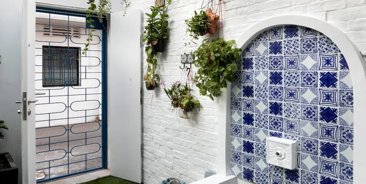 He adds that the apartment needed a full freshening treatment, and so they started with the main door, giving it a new coat of paint in royal blue.