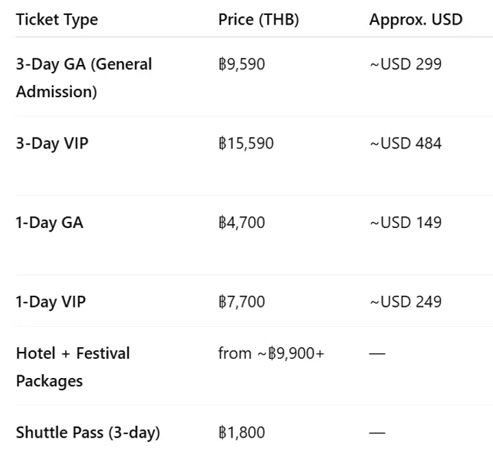 Tomorrowland Thailand 2026 Pass Prices