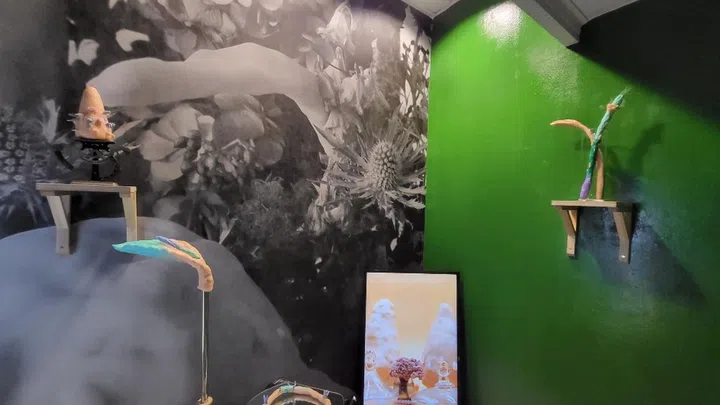His new show titled, Served with a Side of Cheek, is currently the inhabitant of independent art space I_S_L_A_N_D_S. He's transformed the space into a lush garden of wild textures and colours to explore tongue-in-cheek ideas of queerness and preoccupation with the physique through "text, body, botany and navigation".