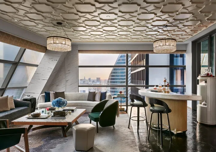 Also housed within the hotel are four dining venues and bars, including a European brasserie, fine-dining Chinese restaurant, upscale organic cafe and posh speakeasy bar with a whisky library and 6,000-strong record collection.