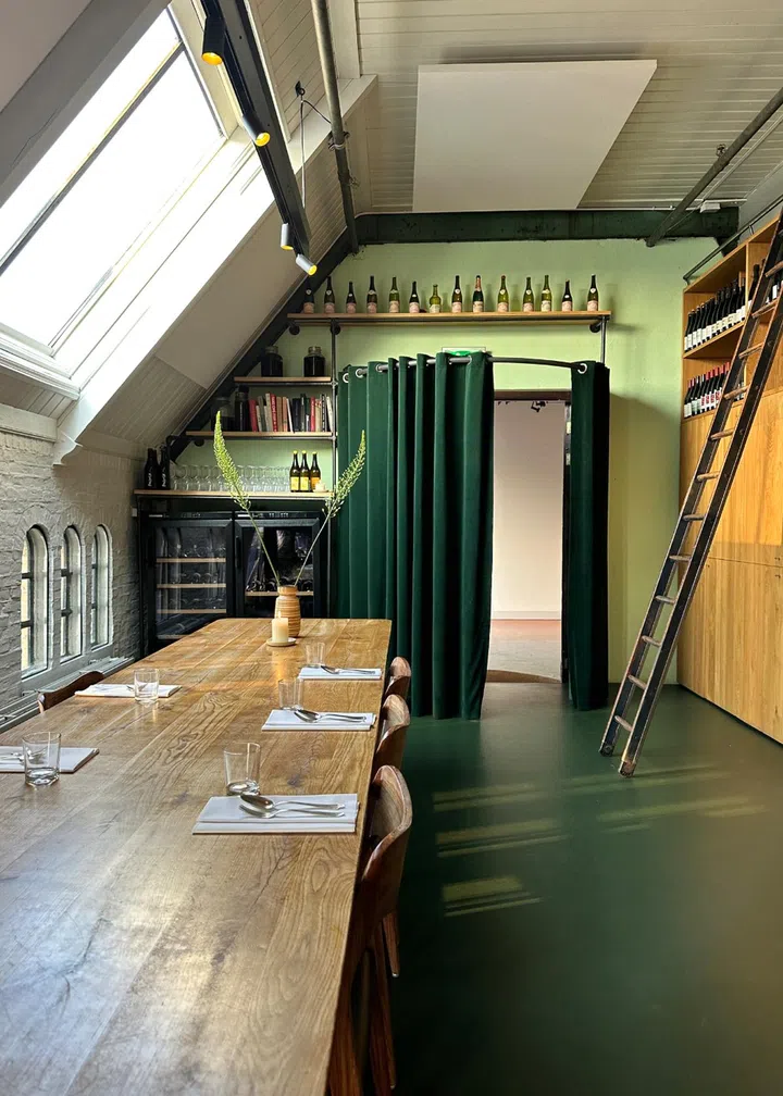 Seasonal, sustainable ingredients take centre stage at this fine dining restaurant. Located on the third floor of a redeveloped warehouse, BAK offers five-, seven-, and nine-course tasting menus, with prices reaching up to 115 euros (excluding drink pairings). The menu features interesting yet unpretentious dishes, such as a beetroot, blackberry, and currant mixture wrapped in shiso leaves, and a flavorful aubergine spread topped with zucchini and lovage. The relaxed atmosphere is complemented by rustic-chic interiors, featuring an attic-like ceiling and whitewashed brick walls.