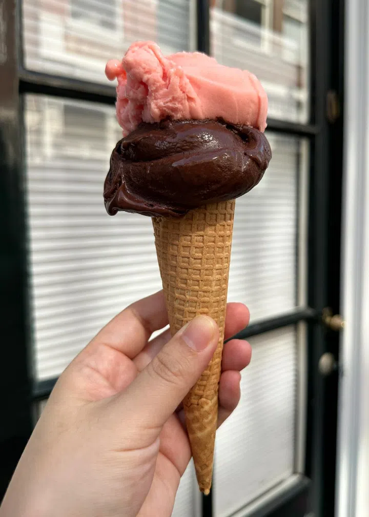 Cool, rainy weather is often associated with the Dutch capital, but during our July visit, we were treated to two unusually hot, sunny days. Like everyone else, we turned to ice cream for relief and joined a long (but quick-moving) queue at Monte Pelmo, an artisanal shop that has been around since 1957. I chose two vegan flavours – sometimes dairy can be a bit heavy for me, especially on hot days – and my watermelon and dark chocolate combo was, no exaggeration, the best ice cream I've had in a long time.