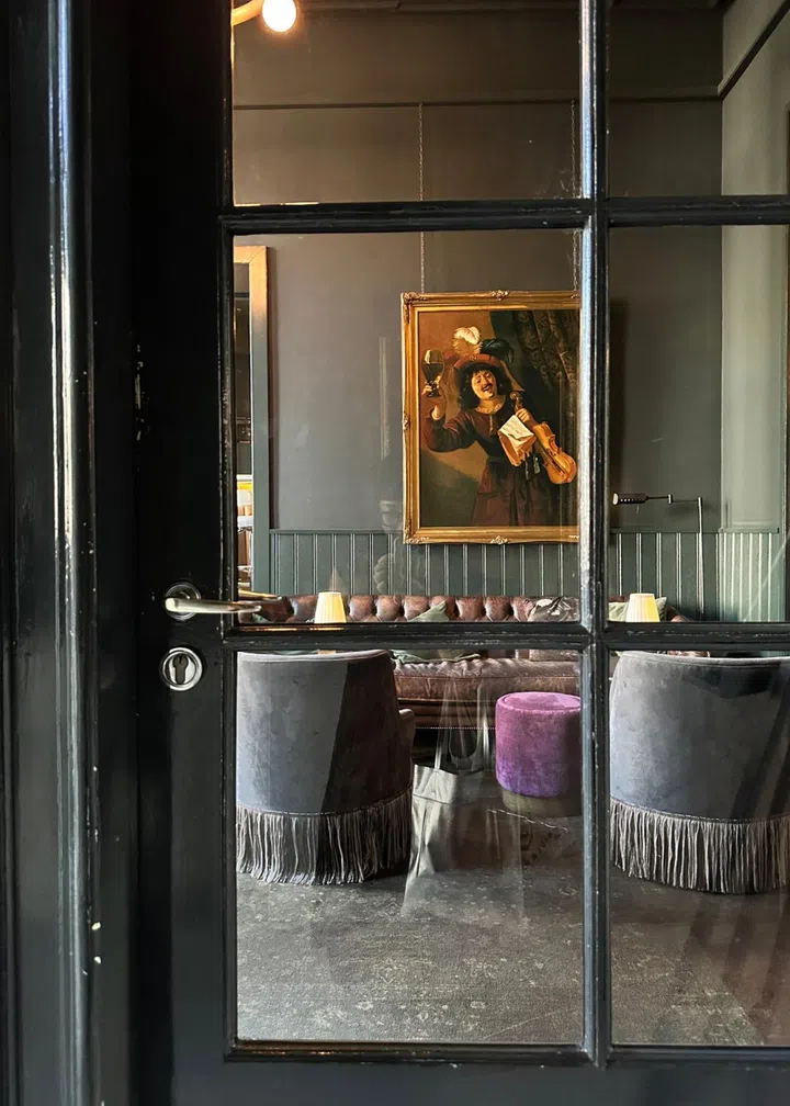 Dark, cosy, and moody, Pulitzer’s Bar – located inside the elegant Pulitzer Amsterdam Hotel – ticks all the boxes for a great spot to enjoy a drink. You can feel like you’re in your private library, surrounded by old books, textured brass mirrors, and velvet-upholstered armchairs, all while bow-tied and denim-clad waiters take your order. In addition to classic drinks, the bar features a fun menu of original cocktails. My friend ordered a Red Moon, an intriguing twist on the highball, made with gin, Campari, rooibos, rhubarb, grapefruit foam, and pink peppercorn.