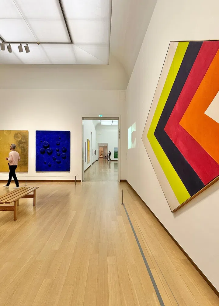 You know a building is iconic when it earns its own nickname. Amsterdam’s main museum for modern art is often referred to as a “bathtub” due to its gleaming white, angled exterior and massive overhang. During our visit, the Stedelijk was between major exhibitions, but I was impressed by its collection highlights from 1950 to 1980, featuring renowned artists like Frank Stella, Agnes Martin, and Yves Klein. As a graphic design enthusiast, I was also thrilled to discover works by Sister Corita Kent and Ikko Tanaka. For fellow museum nerds (raises hand), be sure to pay attention to the wall text – it thoughtfully addresses the role of colonialism in art acquisition and restitution.