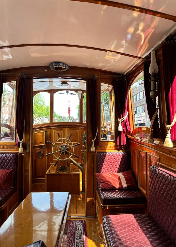 Another must-do experience in Amsterdam is taking a canal boat tour. The waterways have shaped the city’s character, and seeing the scenery from the water is truly fantastic. However, not all boats are created equal. You won't find me on one of those boozy party cruises with rowdy bachelor groups – no thank you. Instead, we chose the Tourist, a refurbished canal boat from 1909. This elegant vessel, with its gleaming teak and brass, reportedly hosted Churchill as a passenger in 1946. Aside from its storied past, the boat’s small group size (capped at 10) creates a serene atmosphere for a delightful hour and a half of sightseeing.
