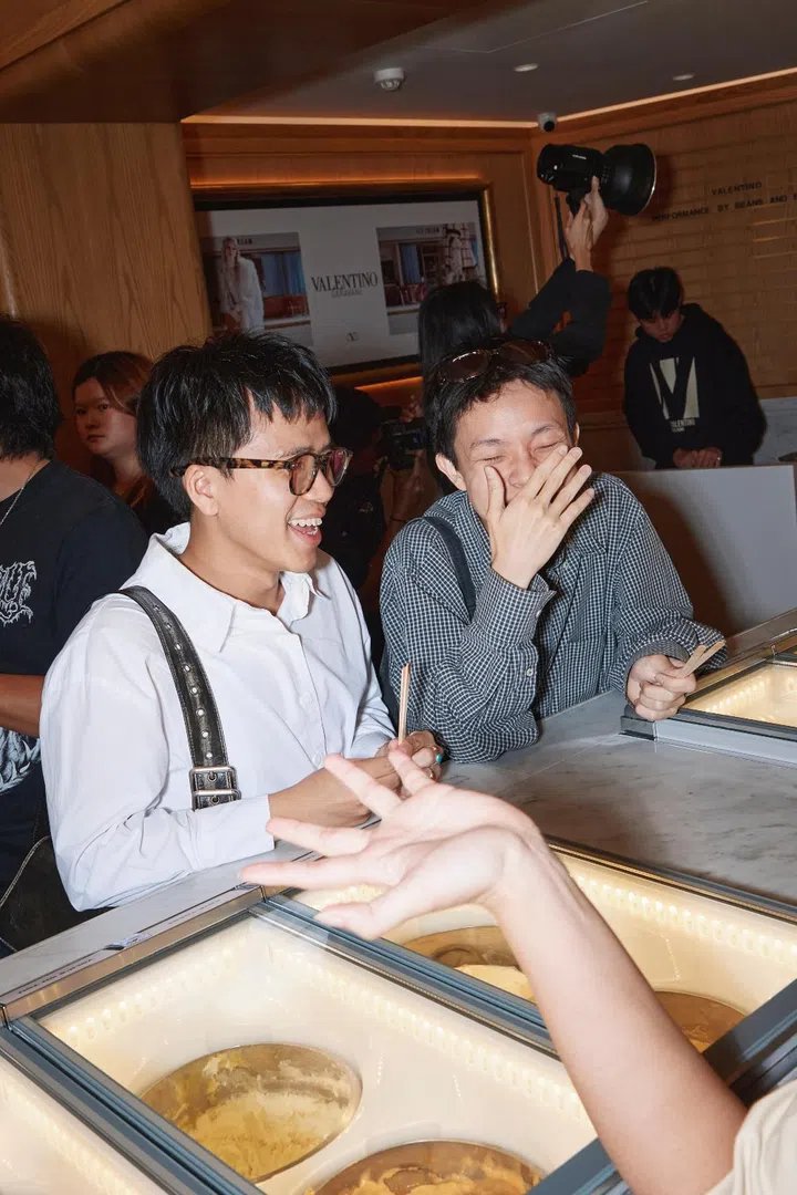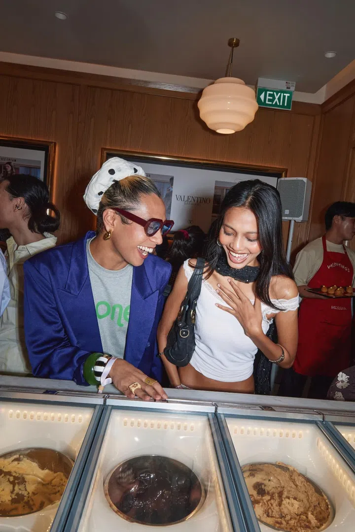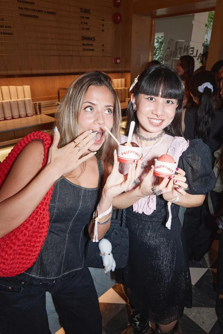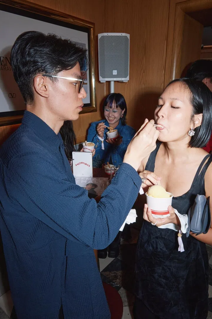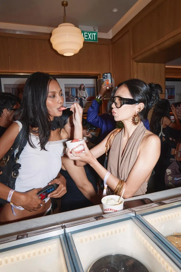 Imagine the perfect Italian summer: gelato in one hand, nowhere to be, and everyone around you looking like they just stepped off a Luca Guadagnino set. Now erase the cobblestone streets, replace them with Club Street, and you’ve basically got what went down at gelataria Messina Singapore last Friday evening where Valentino, in collaboration with FEMALE, put on a small, intimate party to celebrate the arrival of the brand's Fall 2025 collection.