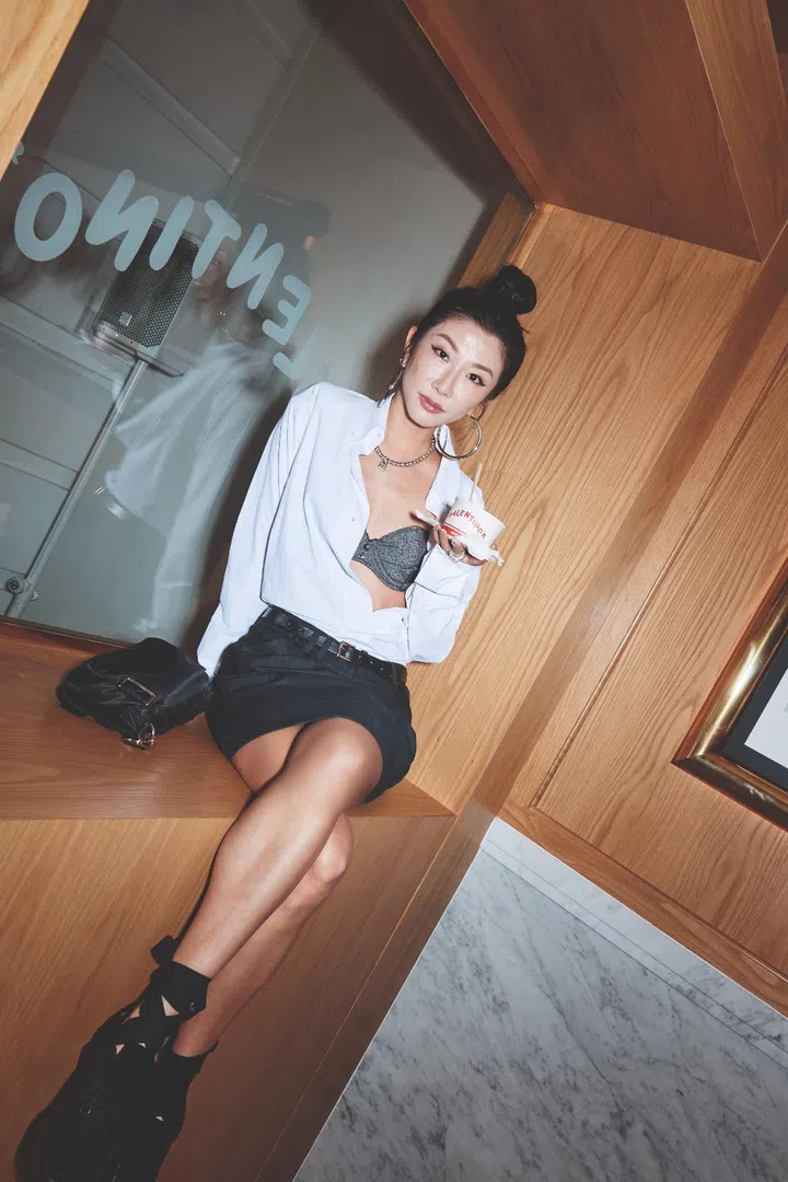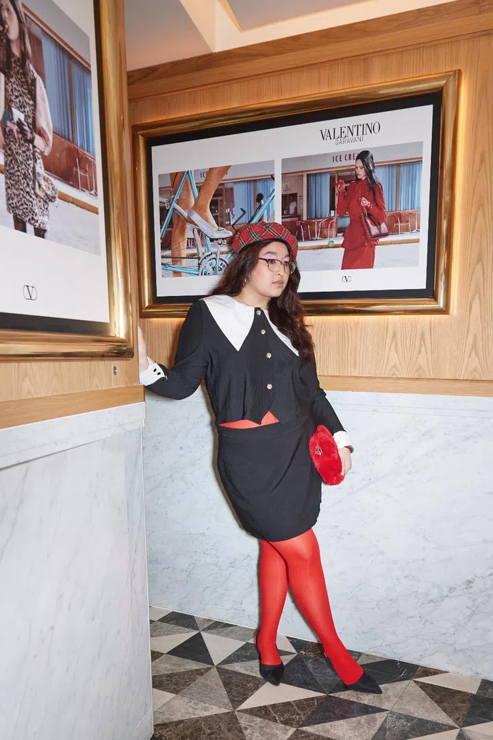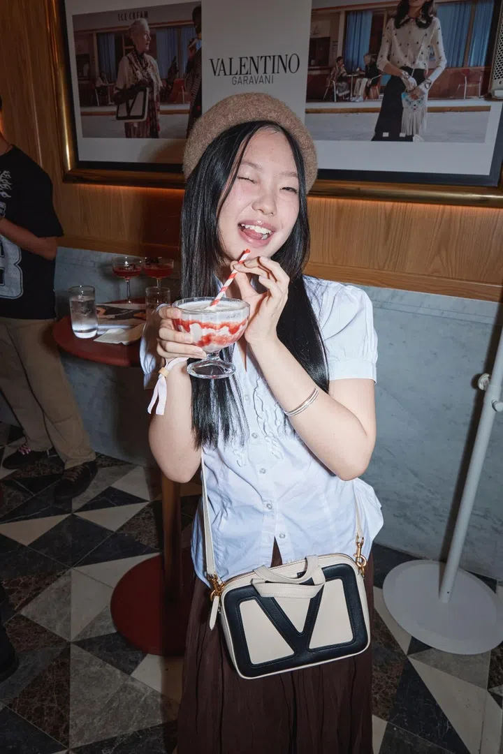 Another growing music superstar was also in attendance: singer-songwriter Regina Song, pictured here enjoying Messina’s Amaretto Sour milkshake and a Valentino Garavani Viva Superstar crossbody bag