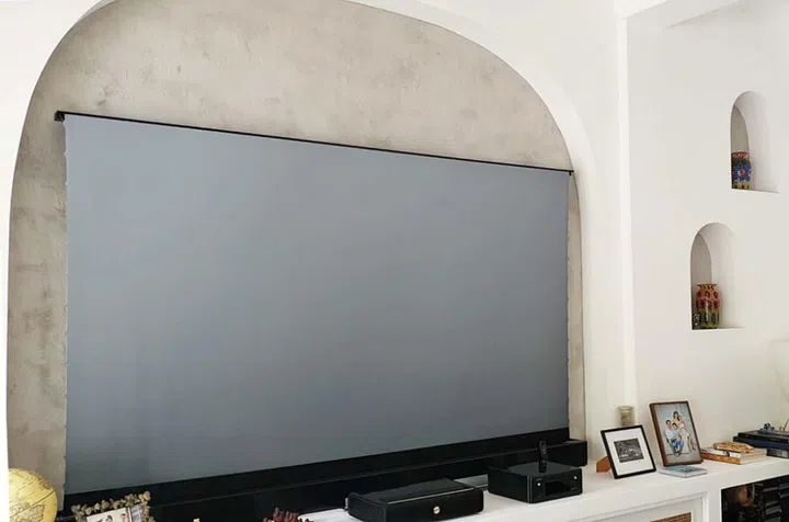 A blank TV taking up a wall can be an eyesore when it’s not in use, but you won’t have that problem if you’re using a projector screen. Most screens can be tucked out of sight when not in use, leaving the wall behind it free for other things such as a picture gallery or bookshelves. Mounting the projector screen in front of the window also works in small spaces where you don’t have much room.