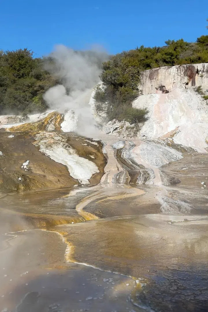 Hot tip: The temperature at Orakei Korako is often two to three degrees higher than its surroundings thanks to all this geothermal activity. Layers are helpful so you can adjust.