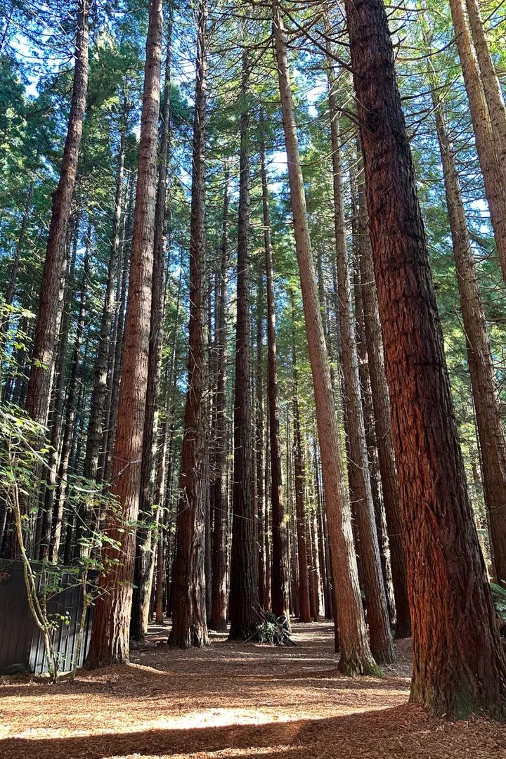 Our first foray into the greenery of New Zealand is with the easy Redwoods Treewalk in Rotorua. Nestled among giant redwood trees and silver ferns, the 700-metre-long aerial trail spans 28 suspension bridges and 27 platforms. Lifted up to 20 metres off the forest floor, the views are lovely and the atmosphere peaceful. On the first bridge, nerves do come into play a bit (add a slight fear of heights to my list of foibles), but by the last bridge I don’t even notice the height. The overwhelming impression is one of soothing quiet, blissful green, and crisp, cool air.