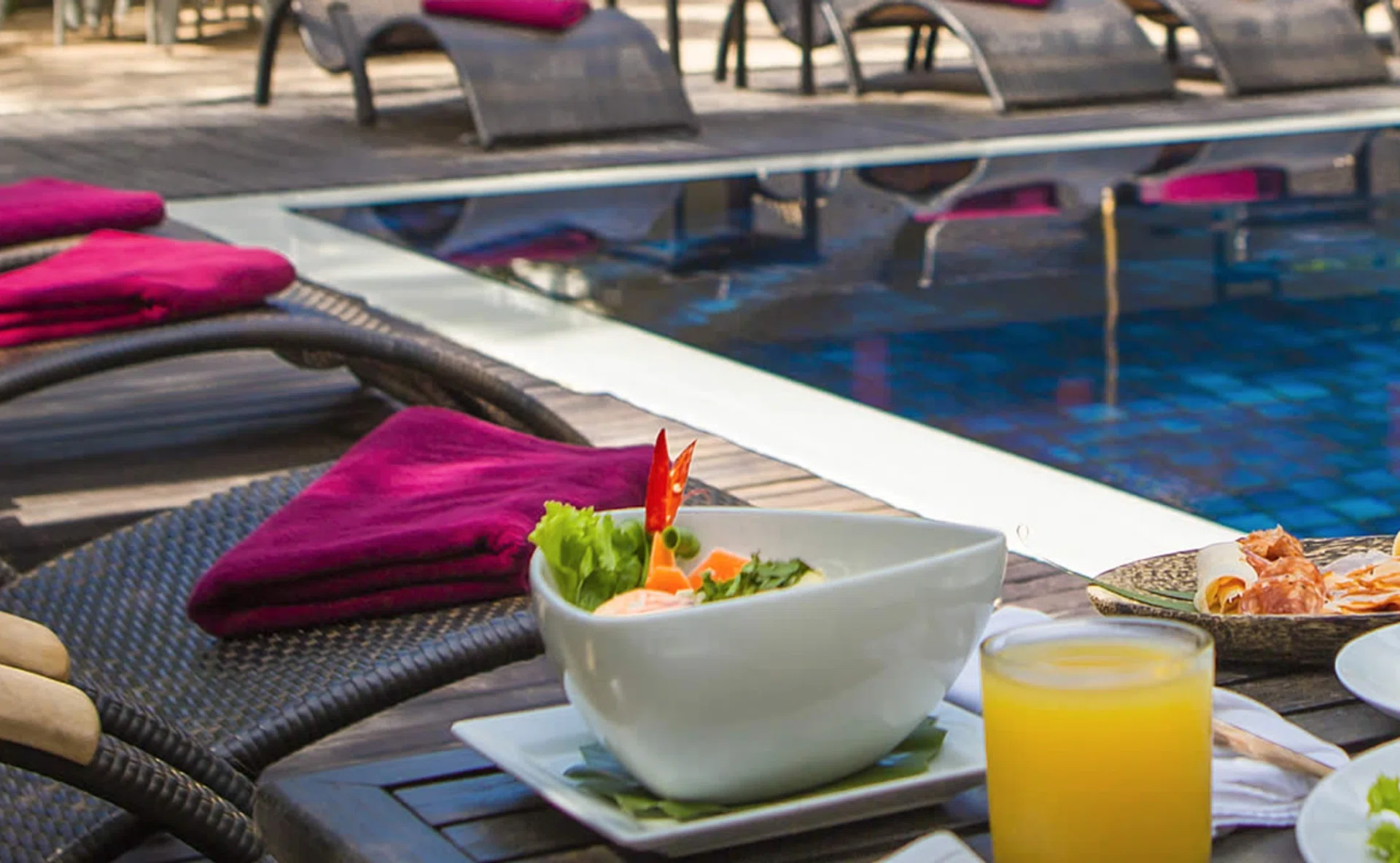 But should you feel like resting in, the newly-refurbished suites feature a mix of modern and traditional Cambodian amenities; soothing hues, elegant fabrics paired with wooden floors and decorative pieces and furniture that are hand-made locally.