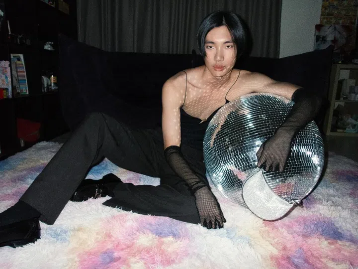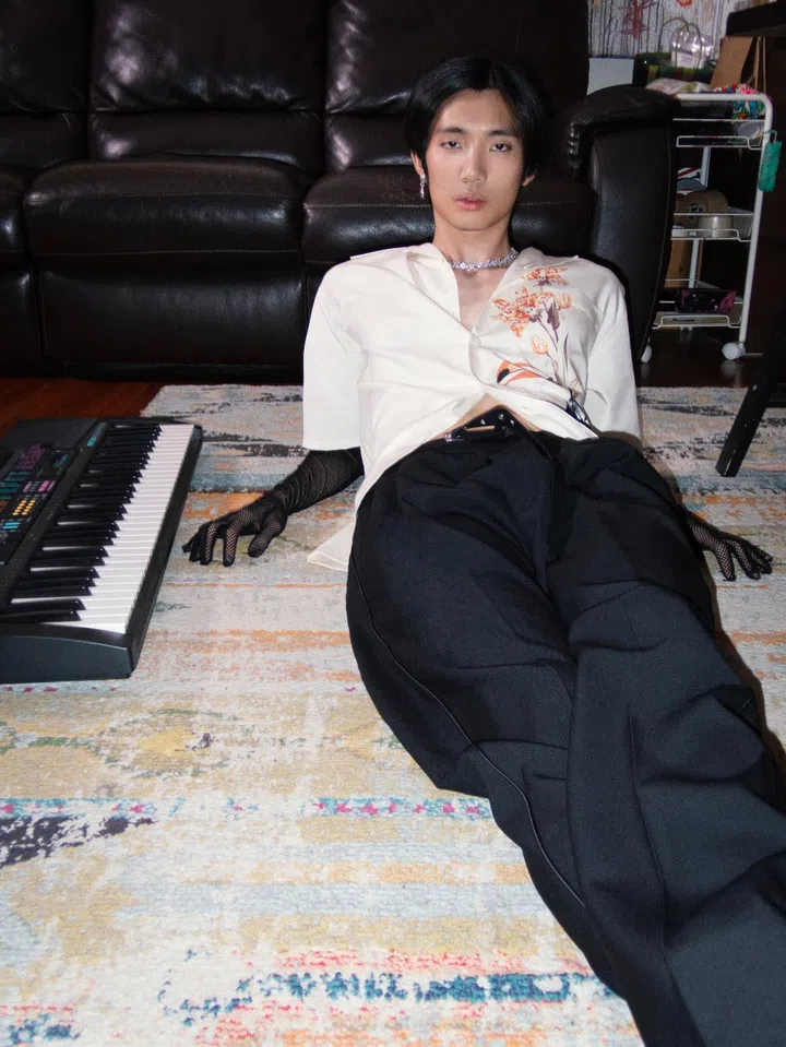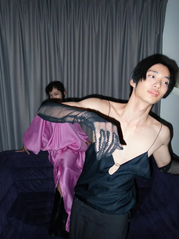 “Model Lucas Jong is someone I met for the first time through this shoot with FEMALE and he’s very representative of what I’ve learnt about Gen Zers through my own experience: so fluid and comfortable with his sexuality, as seen through the way he dresses and moves. I know he’s a kid of the scene who regularly attends different parties and it’s nice to meet someone from the community in a non‐party setting.
