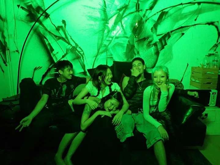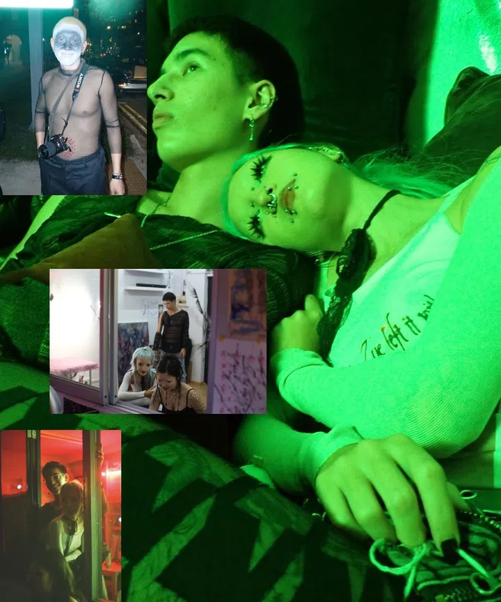 A montage of photos from Marisse Caine's photo diary featuring the members of the collective, Crevice. “These are snapshots that represent a typical day in our lives as this big group of creatives who all hail from different collectives and are all of different ages and backgrounds. People think we only party together, but the truth is, we only go to parties to support one another and we actually spend most of our time together not at parties ... Music is like this figurative pub for creatives and has brought so many people together ... And when you see groups of people who don’t look like they belong together with one another and then find out that their connection is actually genuine, that feeling is just infectious, and I think that’s what’s permeating the music scene here right now.”