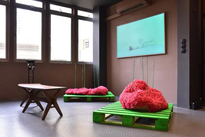 "The show is based on how many young artists in Singapore often have difficulty securing safe and conducive spaces to develop their craft and ideas. The space was, therefore, designed to embody ideas of transience and temporality.