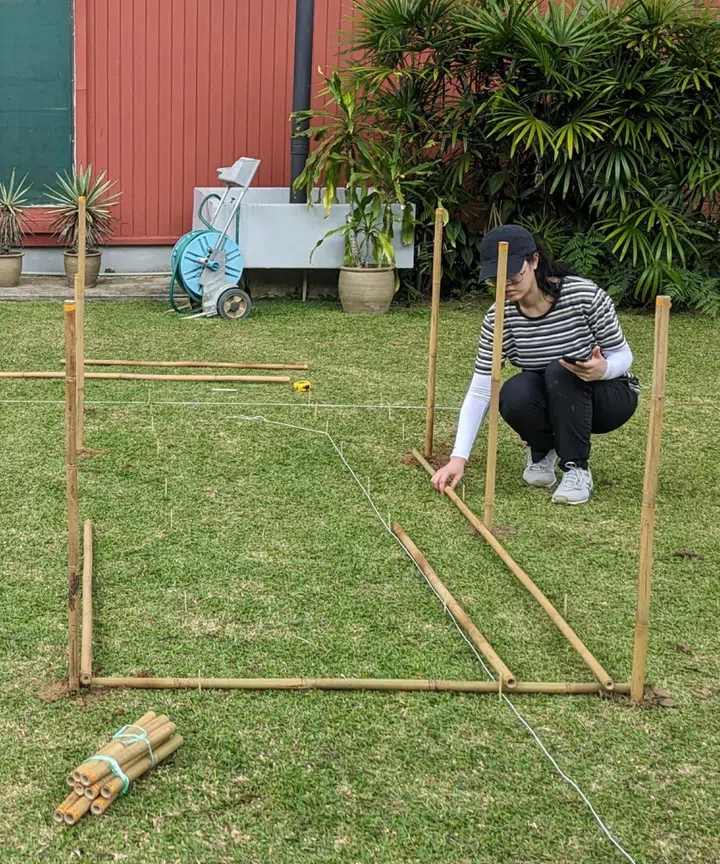 We found out the application was approved around mid-August, so that was when we could get started properly, acquiring materials and stuff. We had scans of the original architectural drawings and floor plans, which were really helpful. I knew this project was a little bit out of my comfort zone – it’s on a slightly bigger scale than I'm used to, and also outdoors in the monsoon season – so I tried to prepare myself for that. I made sure to have all the pieces pre-cut so I could check everything fit correctly before I went and started digging holes in front of someone else’s house.