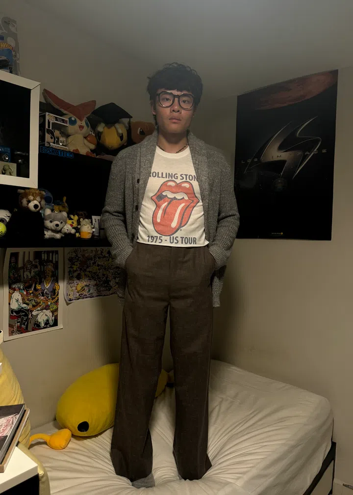 What’s in his collection: “I’ve definitely got some authentic 1970s garments such as this one tasselled leather vest, bell‐bottoms, suits and vintage band tees, as well as jewellery ... I like exploring thrift shops for them, but online marketplaces such as eBay, Etsy, Grailed and Carousell are also great for finding items from the decade. I also get clothes with ’70s silhouettes custom-made at the tailor’s, making them my own by selecting my choice of fabric and buttons.”