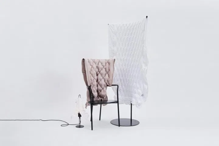 What: Her project, titled the Looft Collection, investigates air, an abundant yet intangible source, as a supporting design element made visible through pneumatic textiles. The collection comprises wearable apparels and soft furnishings, which she dubs “clothing for people, furniture and space.”