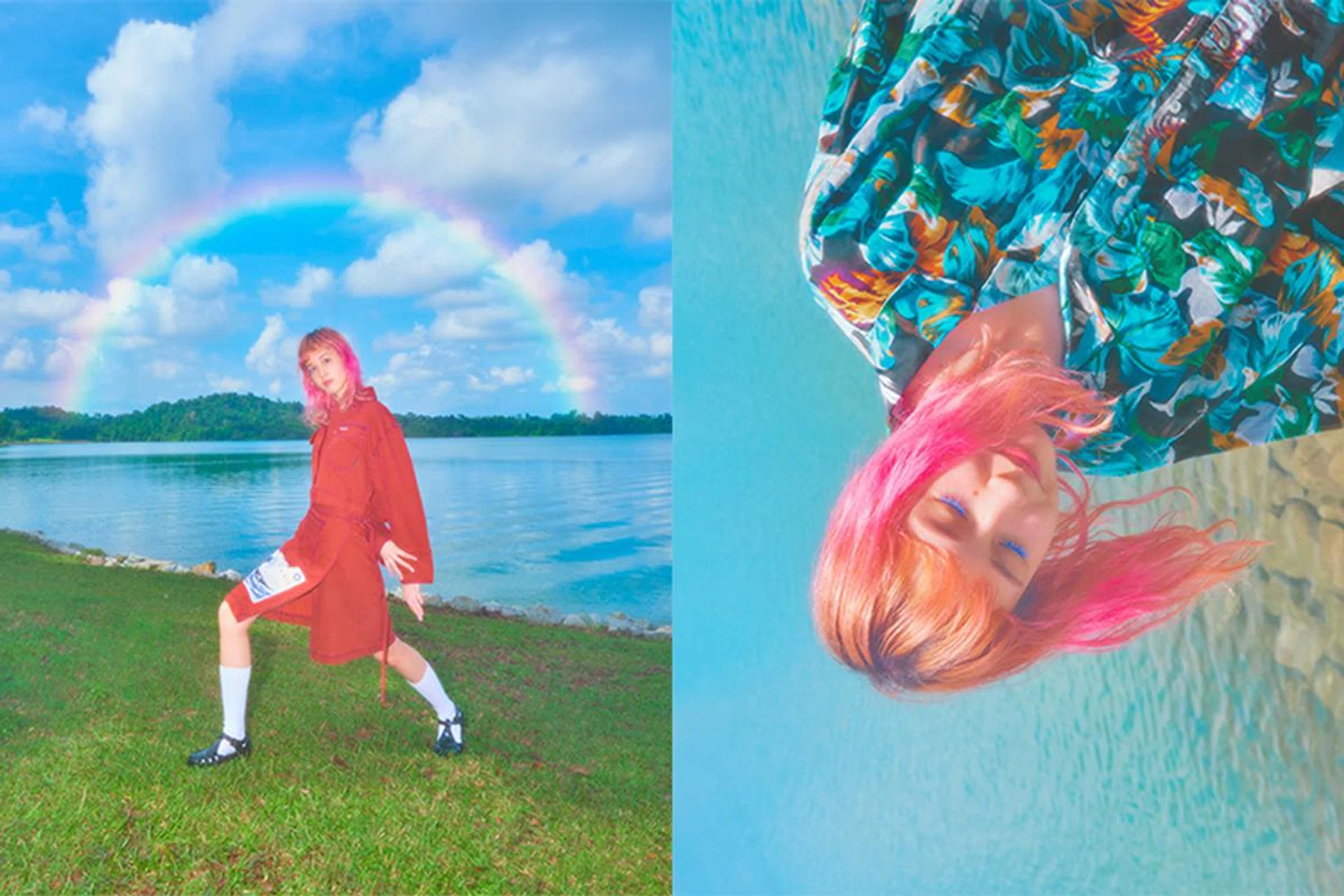 The Shoppes At Marina Bay Sands (#01-18) – her first overseas gig – the 23-year-old is as girlishly charming as she is Shibuya underground cool. At this shoot at Upper Peirce Reservoir on a scorching Thursday morning, she’s breezy, enthusiastic and – in typical Japanese fashion – exceedingly polite, snapping selfies and poking around the flora and fauna in between takes. “I feel good,” she chimes with a grin, her energy able to perk up even the most tired crew member.