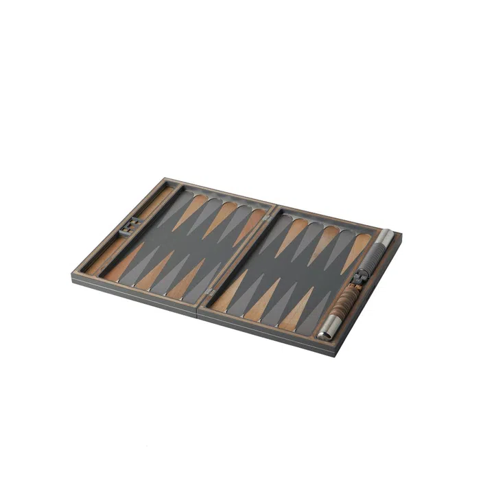 The ultra contemporary of walnut and stainless steel earns this backgammon set a perfect 10 in our books.
