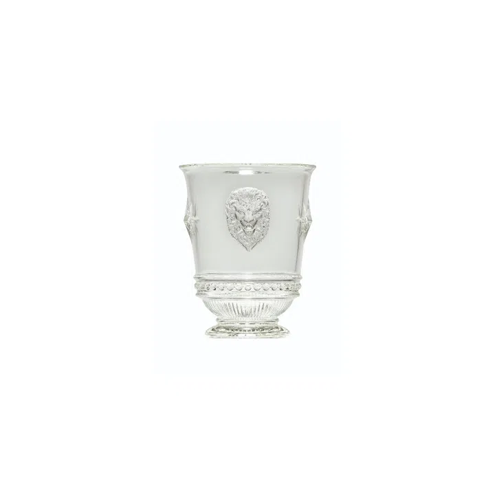 Decorated with engraved lion heads, this crystal glass will give your dining table just the right dose of grand drama.
