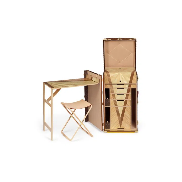 Louis Vuitton's trunks have been reimagined into various home objects throughout the years, and its latest iteration, Secretaire Bureau 2.0, is definitely worthy for a spot in the fashion savant's home. Inspired by the trunk-desk first created in 1929 for orchestra conductor Leopold Stokowski, this modern remake sees the trunk converted into a fully functional mini-office with a folding table and stool and finishes in straw marquetry.