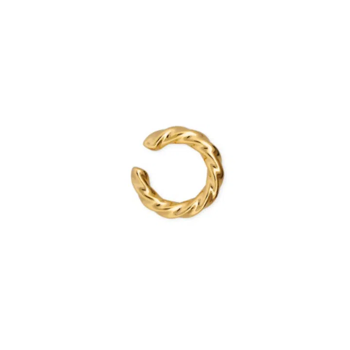 Inspired by the fluted texture of the cruller pastry, the Cruller Ear Cuff features a twisted design. WIth or sans piercings, this unembellished ear cuff works for any ear stack. Sold as a singular piece.