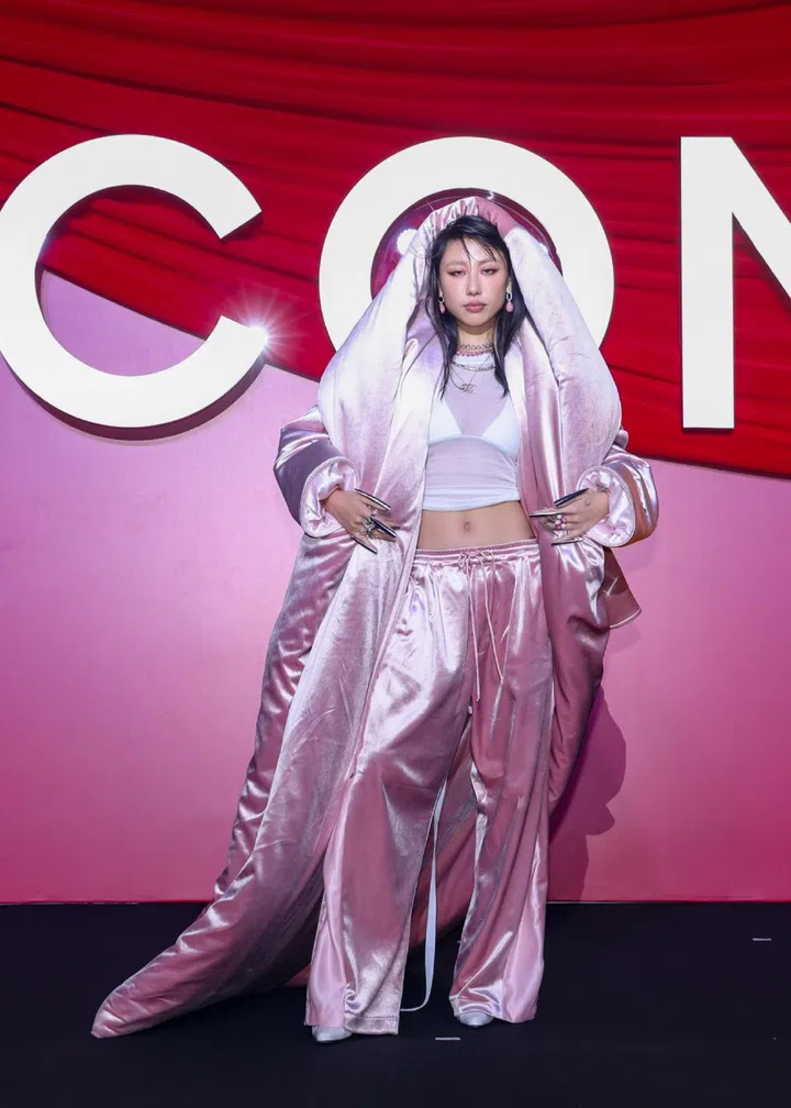 Fashion creative Mae Tan made a grand entrance in a pink Harry Halim co-ord set, which she paired with an Ann Demeulemeester top and Balenciaga shoes.