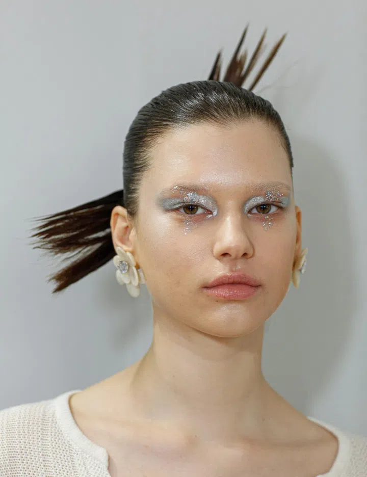 Now: Today, we’re seeing it on fashion icons, from Hailey Bieber and Gigi Hadid, to Doja Cat and Lana Condor. But instead of applying the frosty shimmer on the eyes, cheeks and kips, it’s now about mixing different textures to keep the makeup looking fresh and modern.