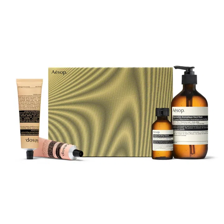 What to know: Each kit contains different combinations of products – Majestic Melodies (pictured) for example, comprises Aesop's popular Resurrection Aromatique Hand Wash (500ml) and the matching Hand Balm 75ml, as well as the Rejuvenate Intensive Body Balm (100ml), and the Geranium Leaf Body Cleanser (100ml) for a body-focused cleansing routine.