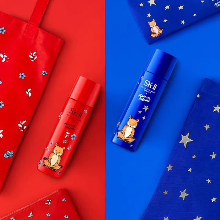 What's included: A limited-edition take on SK-II's evergreen Pitera Facial Treatment Essence that's the result of the first collaboration between the Japanese skincare giant and the French fashion label. For this launch, the essence's bottle comes in two colourways – red and blue, each emblazoned with Maison Kitsune's emblematic fox. The red design features flower motifs and a meditative fox in anticipation of the fresh new day, while the blue bottle features star motifs and a meditative fox unwinding in its peaceful state. The collaboration also includes a complimentary three-piece set consisting of the brand's Facial Treatment Clear Lotion (30ml), Facial Treatment Gentle Cleanser (20g), and Skinpower Advanced Cream (15g).